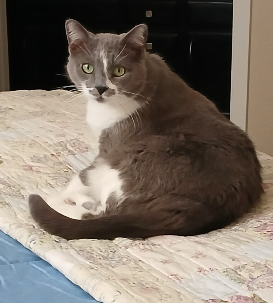 She rumbles a purr and stands.